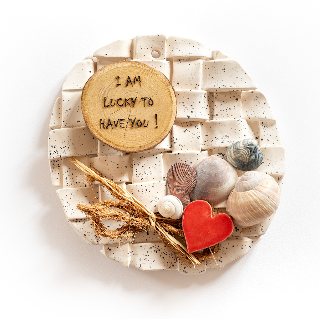 Dekoration aus Keramik, Holz und anderen natürlichen Materialien.